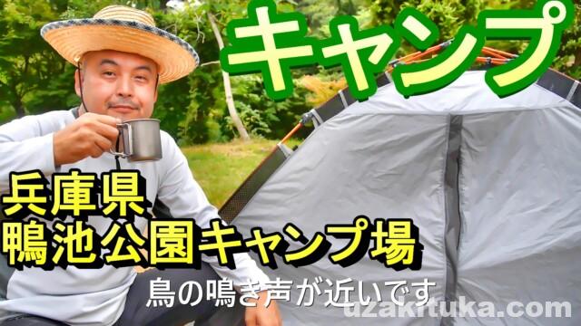 鴨が泳いでいる池の隣の公園のキャンプ場です。